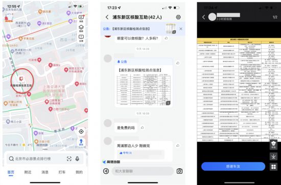 高德地圖也上線了核酸檢測信息互助群功能,市民可通過群內互動的方式了解該檢測點的實時情況。在上海市普陀、黃浦、徐匯、靜安、閔行、嘉定、長寧、浦東等8個區內,聚焦核心商圈、交通樞紐、學校等人流量較為密集的區域,上線10個區域核酸檢測信息互助群。在群內,以群公告的方式展示區域內全部核酸檢測點的具體位置、預約方式、檢測時間等詳細信息;同時群中用戶還可就群內多個檢測點的人流量、排隊情況、周邊擁堵等信息,做實時的互動互助。點擊高德地圖上擁有“紅色愛心”圖標的檢測點,即可加入該檢測點的核酸檢測信息互助群,通過群內互動的方式了解該檢測點的實時情況。