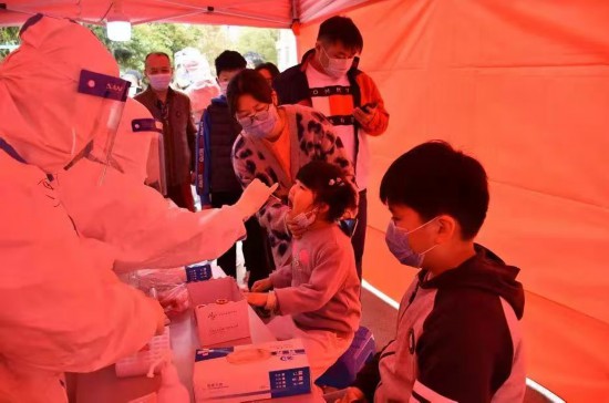 “我們小區有不少學生在家上網課,建議篩查時可以專門開辟一個綠色通道!敝驹刚呤⒁探ㄗh。于是,核酸篩查現場,在工作人員和志愿者的指引下,學生在一位家長的陪伴下,在綠色通道內保持間隔,有序等待檢測。