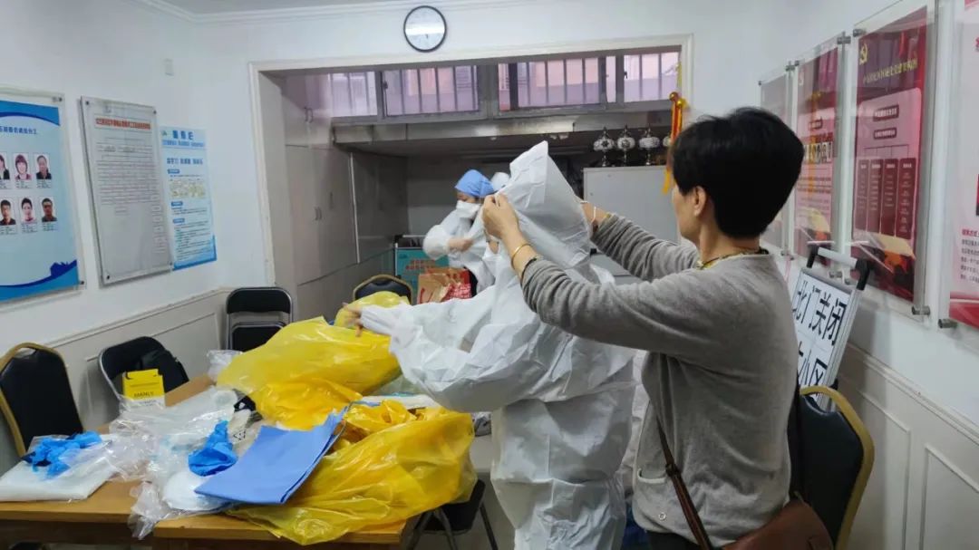 “跟你們合作很省力,采樣速度快多了!弊屩芗覙蛏鐓^衛生服務中心負責上門采樣的醫務工作者交口稱贊的,正是和他們一樣身穿防護服的4名“大白”——來自武夷路727弄的社區工作者。