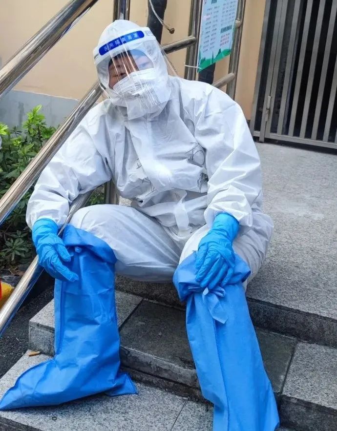 “周末兩天氣溫升高,樓道里更是悶熱不通風,穿著防護服爬上7樓,社區工作者已經渾身是汗,體力消耗非常大,再加上連續作戰,非常疲憊。盡管如此,我們的社區工作者在封控過程中仍耐心指導,反復核實人員信息,不厭其煩一遍遍答復居民的問題!