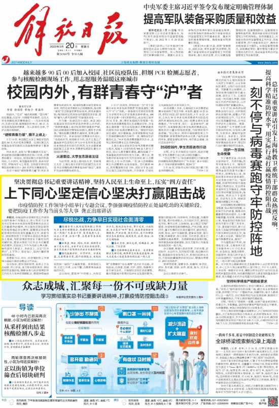 3月18日,上海市委常委會舉行會議,要求堅決貫徹落實習近平總書記重要講話精神,堅持人民至上、生命至上,堅持科學精準、動態清零,上下同心,堅定信心,采用“切塊化、網格化”分區分級差異化精準防控,一鼓作氣打贏疫情防控阻擊戰,最大限度減少疫情對經濟社會發展的影響。