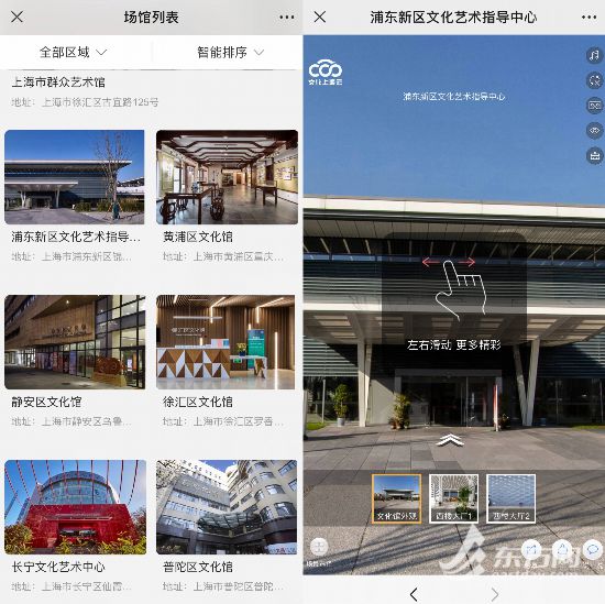 在上海數字文化館“文化場館”版塊,市民可以通過VR智能“逛”遍上海所有文化館