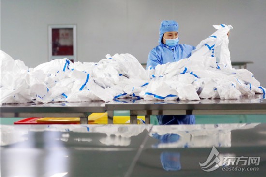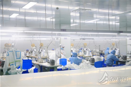 記者在三槍工業城看到,衛生事業部車間燈火通明,工人們開足馬力,趕制防護服、口罩、隔離衣、帽子、鞋套等防疫物資。此輪疫情發生以來,東方國際集團下屬的龍頭股份三槍集團迅速響應,成立了公司疫情防控工作的領導小組和工作小組,部署疫情防控工作和防疫物資的生產、銷售工作。