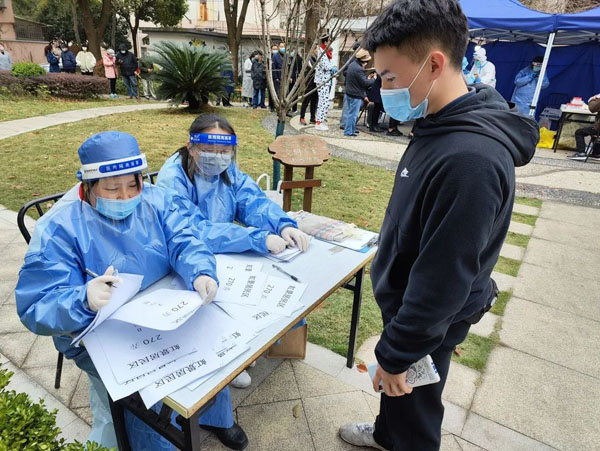 為了方便群眾核酸檢測,虹景居民區延長了防控服務點采集時間。從早到晚,現場工作人員開啟了“連軸轉”的工作模式,除去吃飯的時間,工作時間至少10個小時。為了減少上廁所時間,季莉霞和同事整個上午都不喝水!耙话阒形缬邪雮小時吃飯時間,我們再喝點水休息一下!奔纠蛳颊f,“能多確認一個是一個,盡量減少群眾的排隊時間!