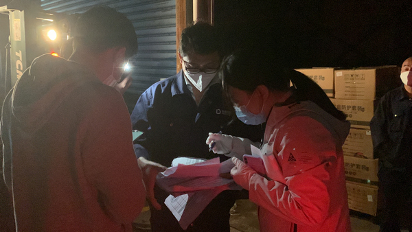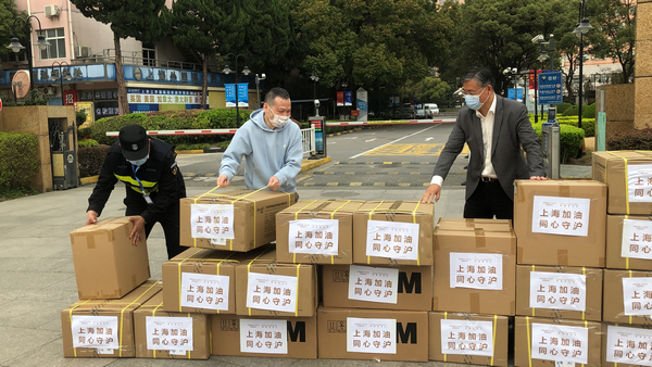 3月16日,編號001車隊的7名員工志愿者執行馳援上外任務,從“接單”到完成交貨用時不到24個鐘頭。17日下午,002號車隊由復星公共事務與企業傳播中心總經理祝文魁帶隊,與3名員工志愿者一起向寶山區衛健委送去一萬件防疫物資。