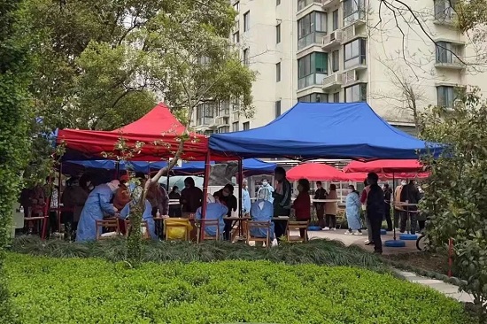 在采樣點位選擇上,小區提前召開居委會、物業、業委會“三位一體”會議!拔覀冃^人員多,加上小區內旁路小徑多,居民的分流和點位的合理設置就顯得尤為重要!本用駞^書記徐文英告訴記者,為了減少居民等待,也避免人群集聚,最終設置了較為開闊的中心廣場和觀景平臺兩個采樣點位!坝^景平臺的一圈種滿了櫻花樹,現在早櫻花也盛開了,設在這里也希望給居民排隊的時候增添點情趣!毙煳挠⒄f。