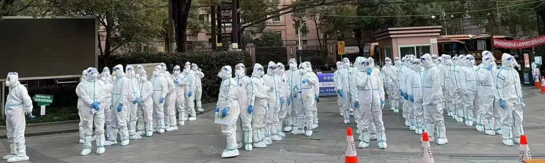 穿上厚重的防護服,戴上口罩和面罩,平日里“交行藍”的沈成鋼成了一名“大白”,與數十名工作人員一起,變成了白色“城墻”里的一塊塊“磚”。