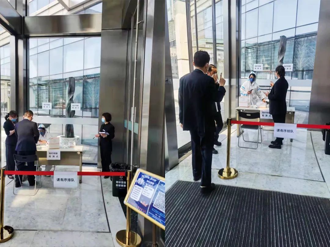 3月10日,閔聯臨港公司副總經理彭洪強根據疫情形勢對園區在建工程項目現場進行閉環式管理,迅速組織聯系檢測機構,對現場人員進行全員核酸,完成共計773人的核酸檢測。為方便閔聯開發大廈租戶進行核酸檢測,減少與外界的接觸的風險及排隊時間,公司積極協調,將原本設于中建二局辦公處的核酸檢測點協調至A座一樓大廳。樓宇中,江蘇銀行,申萬宏源,光脈重點機構和企業均完成了核酸檢測。