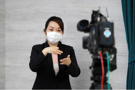 2020年3月,寇辰珠手語翻譯中。視頻截圖