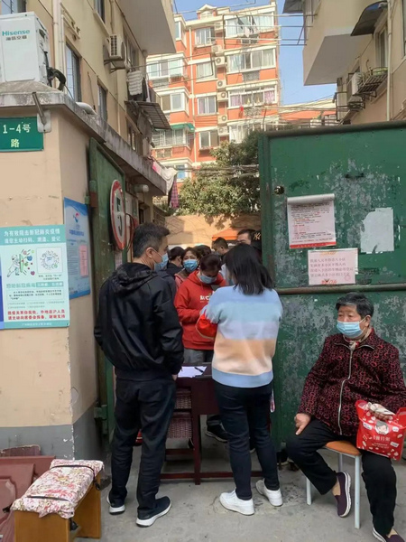 然而,3月15日,王燕妮卻出現在了居委會,參與到忙碌的工作中。3月16日,廣中路街道各小區開始為期兩天的網格化核酸篩查工作,她被封閉在了居住小區。黃山居委的工作人員都讓王燕妮“好好休息”,她卻在早上自己完成第一次核酸后,主動找到屬地恒業居委申請做志愿者。