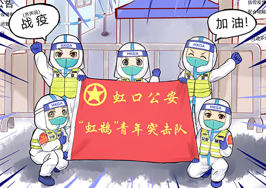 “3月我們第一時間成立了‘虹鵠’青年突擊隊,鼓勵青年民警亮身份、顯擔當!睋缈诠卜志謭F委書記軒睿介紹,分局團委不僅向全局青年發出《讓青春在戰“疫”中綻放》主題倡議書,號召大家全力以赴投入疫情防控工作,同時為了講好青春戰疫故事,召集擁有繪畫特長的“斜杠青年”以漫畫形式參與宣傳,積極展示虹口公安青年良好形象。(王文娟)