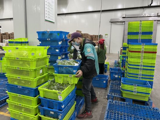 今天,上海天氣晴好。但是在叮咚買菜位于松江區永豐街道的辰塔路蔬果倉庫內,依然有一些涼意。為了保障果蔬新鮮,這個2.3萬平方米的冷鏈倉庫,24小時保持10℃左右。記者看到,倉庫內井然有序地分成了數百條加工產線,工人們正在熱火朝天地將從全國各地運來的蔬菜、水果進分揀打包。