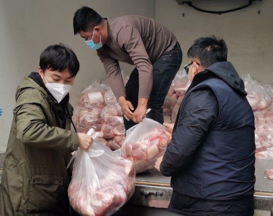 經過一夜緊張的蔬菜采摘和商品準備,今天上午11時左右,保障供應菜品陸續運到長寧。美天副食品公司自有供應鏈的物流人員、美天黨員突擊隊、九華集團下屬兄弟單位的志愿者一齊上陣,進行貨物的跟車運送和裝卸,忙碌了整整3小時,終于把菜品按時一一配送至相應社區。