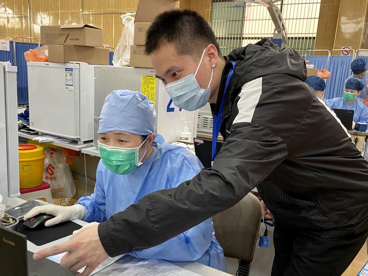 半小時后,孟星亮一家三人冒雨趕來,出現在了應急小分隊中,孟星亮負責掃碼,他的愛人和小姑則加入了采樣隊伍,原先的3個采樣工位也增擴到了5個工位。