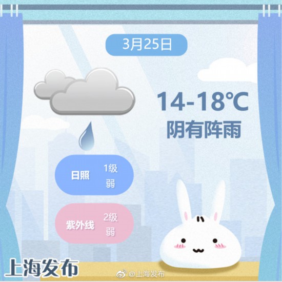 原標題:申城降雨伴大風,今天最高溫度18度