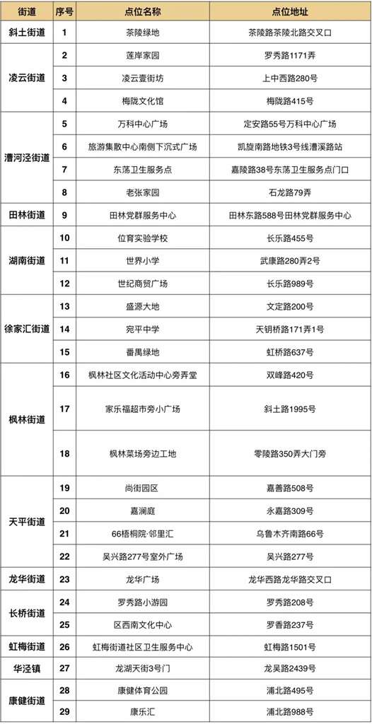 另據了解,為有序做好核酸篩查工作,徐匯區將于3月25日13:00-22:00、3月26日10:00-22:00,在全區設點提供核酸檢測采樣服務。3月16日以來未進行過核酸檢測的“隨申碼”黃碼人員,可根據短信提醒、電話通知、小區告示指引進行核酸檢測預約,至以下點位進行核酸檢測。詳見↓