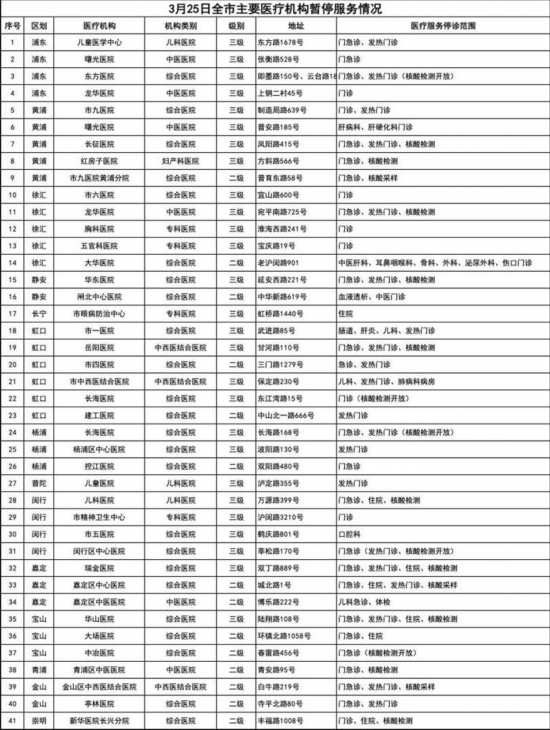 需要提醒的是,近期,本市多家醫療機構因配合疫情協查工作,暫停部分醫療服務,部分醫療機構的核酸檢測服務也暫停開放,請市民朋友去檢測點之前,及時關注各醫療機構官方網站和公眾號等發布的信息。今天,以下醫療機構暫停部分或全部醫療服務↓