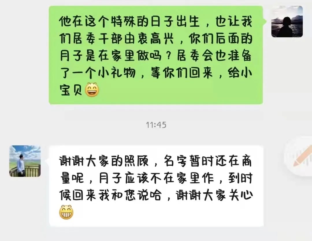 “這次真的要感謝居委工作人員,我們去醫院的時候,沒想到這么快就生了,太驚喜了。社區工作者很給力也很溫暖,一直在替我們想辦法!笔Y先生說道。