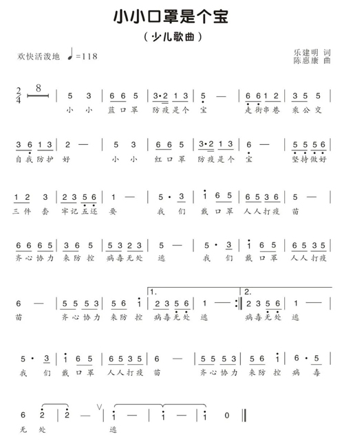 寫出《小小口罩是個寶》的歌詞后,樂建明將初稿發到幾個群組里,看過之后,大家都說歌詞寫得不錯。上海金秋管樂團的指揮陳惠康還熱情地幫助樂建明的作品進行歌譜創作,幾經推敲后完稿。歌曲由全國青少年朗誦金獎獲得者吳瑾婭演唱,上海市老科協造船委“船院塊”塊長唐鴻發為歌曲制作了卡通MV。就這樣,一首朗朗上口的兒童歌曲出現在了大家眼前。