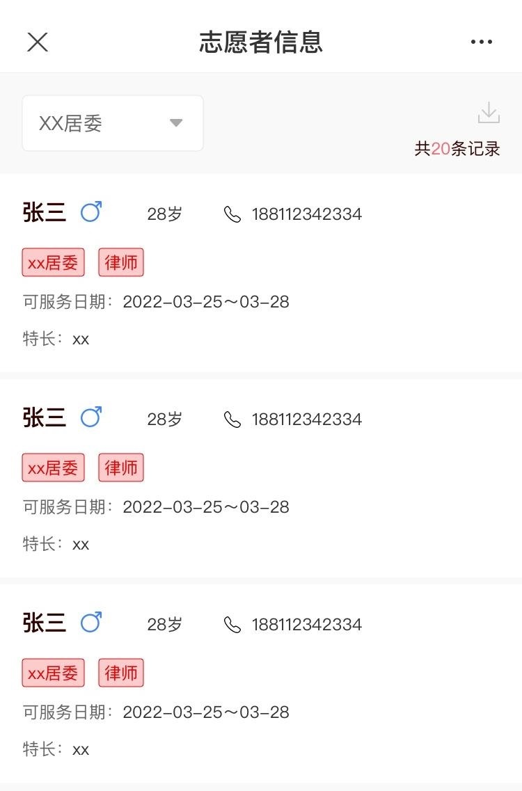 工作人員通過移動端專屬權限賬號登陸后臺,可查看志愿者報名情況,并支持導出功能,方便后期跟蹤管理。