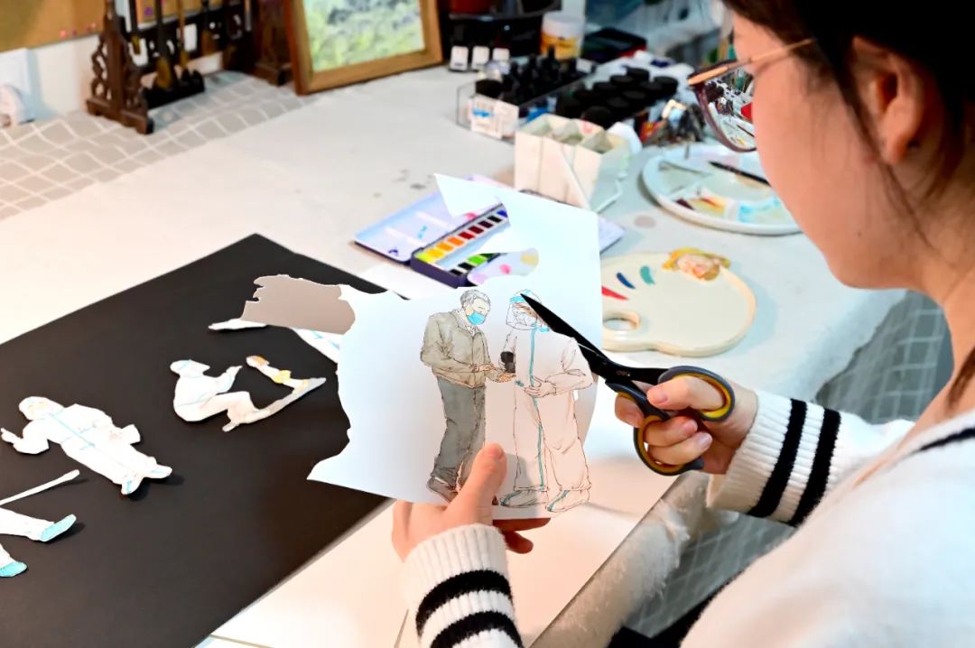 面對疫情,她用手中的畫筆和心中的愛,繼續接力,支援抗疫。