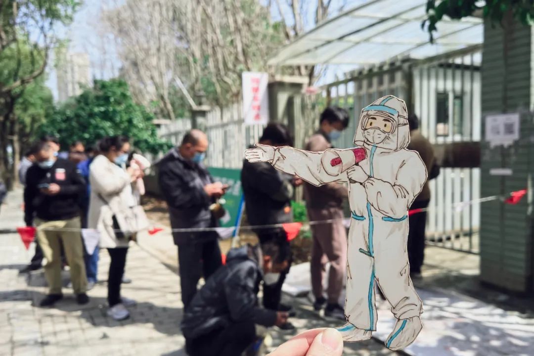 一筆筆勾描的是對志愿者最美逆行的致敬,一點點圈畫的是對市民身體健康的祝愿。