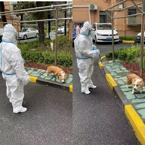 志愿者們不光會服務小區居民,必要時也會悉心照顧居民們心愛的寵物。曲陽路610弄的一戶人家養了一只小狗,因被封樓,小狗得不到充足的運動一直鬧騰,為了不影響周邊居民休息,主人不得不到居委會進行求助。