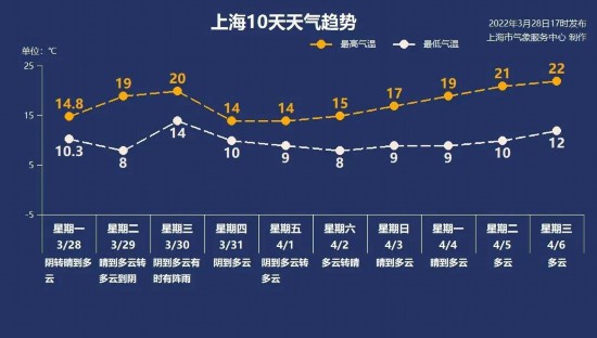 上海天氣晴好、晝夜溫差超10℃ 周三雨水又來了