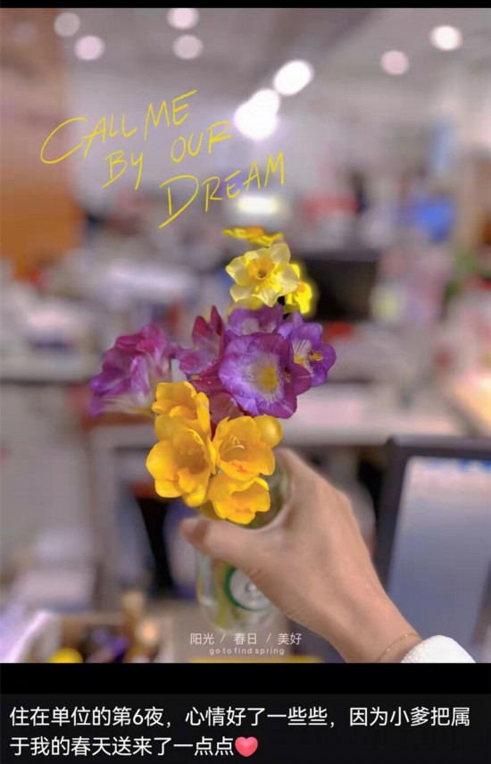 “這個春天我錯過了自家陽臺上的春色,卻收獲了更多屬于這個春天的溫暖!贝缶碚f,自己將牢牢記住這個特殊的春天,縱然艱苦,卻回甘十足。