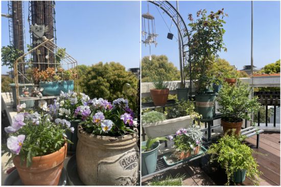 “以花為媒,從小培養他的責任心,我會把澆花、松土的機會留給他,也會讓他搬來桌椅,有花草相伴,一起賞月、數星星!狈仅┱f,現在兒子上初二,學業繁忙,但還是會盡量抽空讓他參與打理陽臺,搭個花架、洗個花盆、翻土施肥……貢獻小小男子漢的力量。