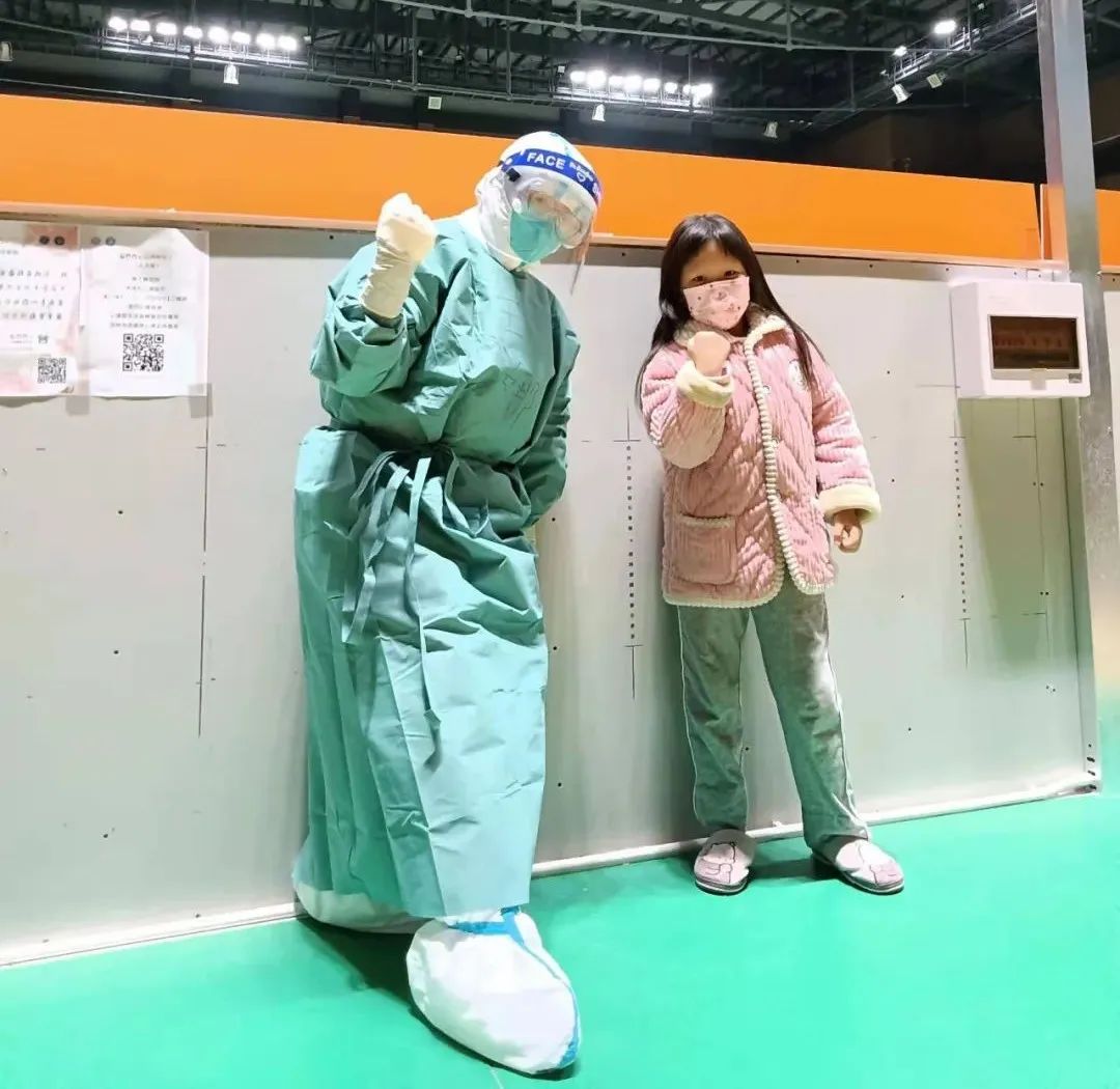 幾天下來,醫護人員成了小患者們最親近的人!笆迨灞П野!鄙窠泝瓤漆t生鄭國將查房時,一名2歲的小患者看到他時,忽然撒嬌求抱抱!爱敃r心里一陣酸楚,她和我的女兒一樣大,這句奶聲奶氣的話,瞬間讓我破防了。但我們穿著防護服,擁抱可能會有風險,只能一邊安慰她,一邊陪她做游戲!被貞浧甬敃r的情景,鄭國將哽咽地說。