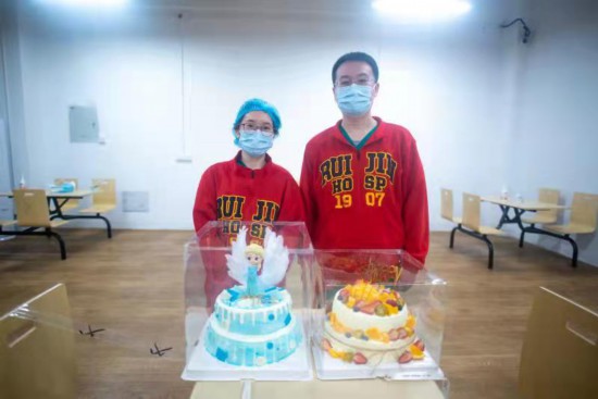 瑞金醫院王勇和王貞貞兩位醫生也在隔離點度過了自己的生日