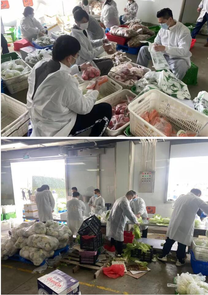 20名志愿者的主要任務是:按照現場指揮要求,分組從事肉類、蔬菜等食品物資的拆包、分揀、包裝、打包、運輸工作。從早到晚,除了短暫的午餐時間,他們一直沒有停歇過。因為他們知道,手中的菜品,就是群眾碗中的保障,為了能夠將菜品盡快送出去,大家不敢有絲毫松懈。