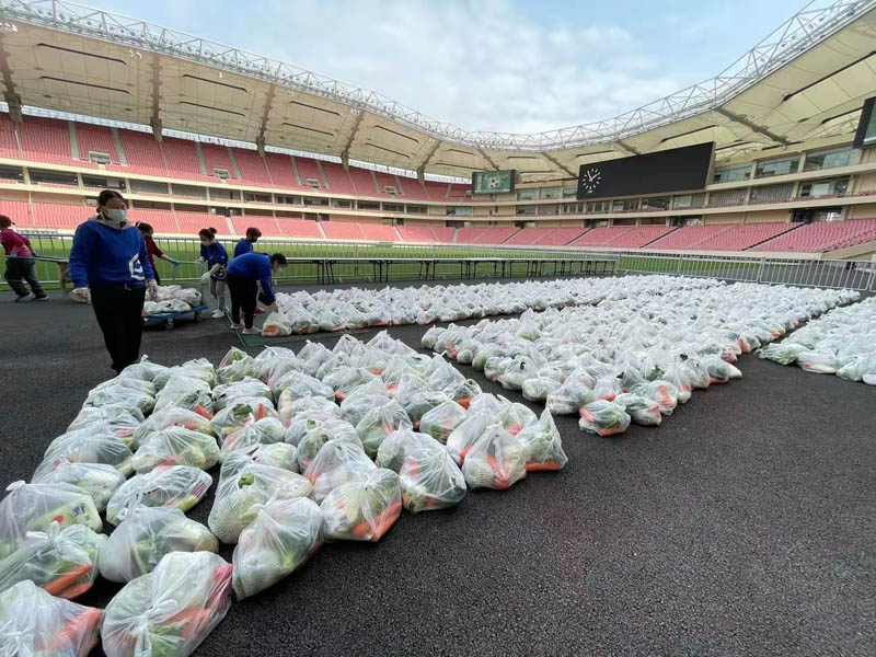 3月30日起,虹口區內菜市場相繼進入封控措施準備狀態,與此同時該區也第一時間啟動市民群眾生活物資供應保障工作。3月30日下午的虹口足球場內,為虹口市民群眾準備的新鮮蔬菜已準備妥當,隨即迅速組織運力送往社區。