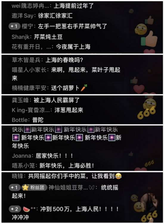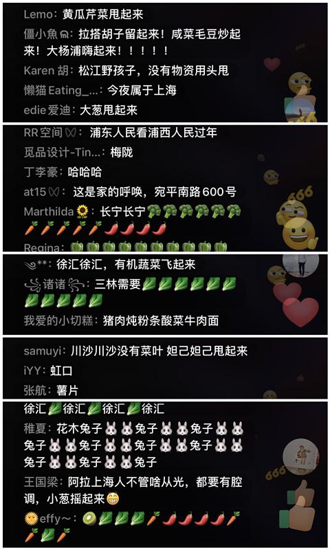 屏幕下方評論區,瘋狂刷屏的,全是揮舞著綠葉蔬菜的上海網友們