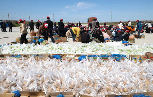 保供期間,上海農場與大豐區政府聯手從“大豐倉”基地增加優質蔬菜摘采和分揀數量,其中“大豐倉”菜品占日供滬百噸蔬菜的一半。為滿足小份菜“套裝”供應需求,農場開展百人揀菜行動,連續3天,300多農場干部職工、26小時、110噸蔬菜、34000份“保供包”被順利分揀包裝,連夜通過綠色通道送往上海各處。目前已儲備可供應上海地區至4月底的米面、雞蛋、蔬果、鮮奶等。