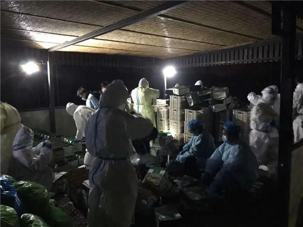 到了夜晚志愿者們還在繼續分揀,封裝工作