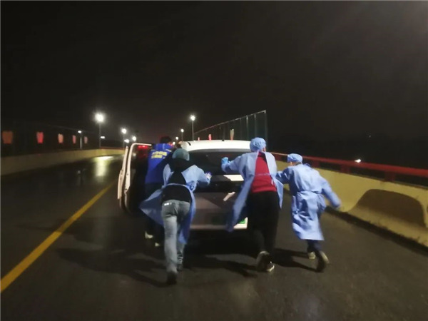志愿者們齊上陣一起將車輛推向勝利的終點線