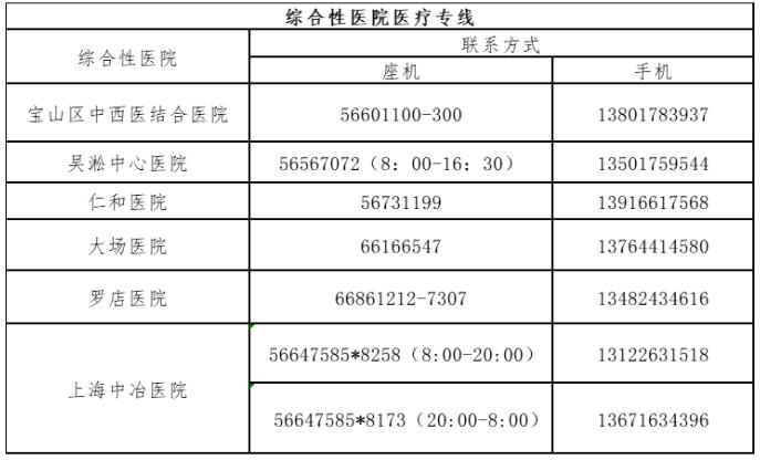 1、開診醫院:寶山區中西醫結合醫院、吳淞中心醫院、仁和醫院、仁濟寶山分院(大場醫院)、羅店醫院、上海中冶醫院急診、發熱門診24小時開診,寶山中西醫結合醫院、仁濟寶山分院開設簡易門診,為區內居民提供基本醫療服務,并為急危重癥患者開辟綠色通道。