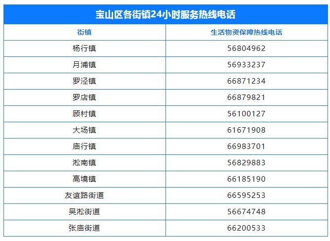 還可撥打寶山區各街鎮開設的24小時服務熱線電話