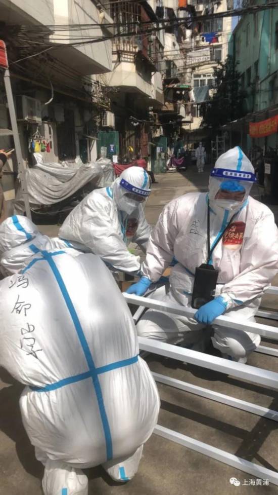 在黃浦區舊改地塊71街坊,由于疫情防控需要,該地塊需要封閉管理14天,但里面還有不少居民與商鋪業主。得到消息后,10多名黃浦區機關干部被火速派駐該封控小區。他們成立了臨時黨支部,分工合作,擔任起“聯絡員”、“送菜員”、“保安隊長”等等工作,與居委干部一起確保小區居民基本需要。