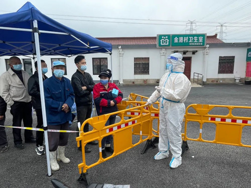 “一二三……十,大家10人一組依次進入采樣區,不要著急,保持好間隔! 在“守關人”孫愷峰的維持下,核酸檢測現場秩序井然。有時,個別村民因為排隊問題語氣有點沖,孫愷峰也會用春風化雨的方式,耐心地和對方溝通。孫愷峰說,自己在益民村這幾天也學到了不少!皽贤ú粌H要耐心,還要講方式方法。比如用一些親切的稱呼拉近關系,溝通起來就容易多了!
