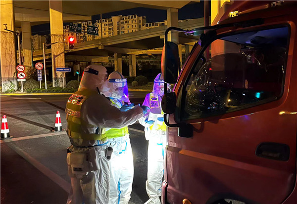 為嚴格落實各項陸路查驗措施,嚴控封控區域車輛、行人通行,消除因車輛、人員流動引發的疫情傳播風險,推動封控區域車輛、行人靜態管控,交警支隊以區內“四縱四橫”主干道交叉點為主,兼顧快速路下匝道及區區交界,將全區道路“網格化”,設置14處查驗點結合“逢車必檢”的工作要求,對每個查驗點制定“一點一方案”,最大限度提升查驗管控效果,全力做好交通封控管理和城市運行“維!敝伪U瞎ぷ。