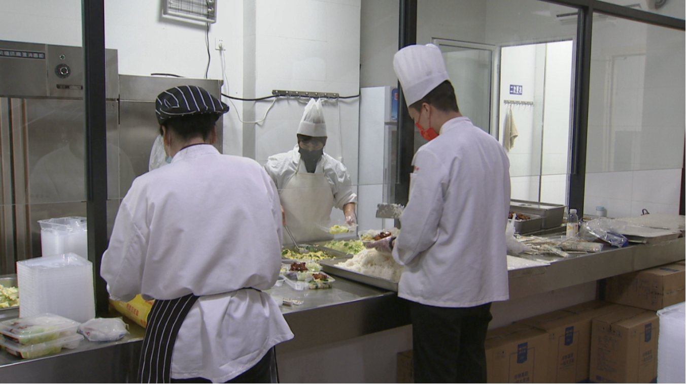 在虹口區江灣社區食堂,雖然處于封控管理期,但餐食的品質仍然有保證,每份餐食有一個大葷、一個小葷和一個素菜,做到營養均衡。上午十點,街上空空蕩蕩,但食堂內工作人員卻忙的熱火朝天,廚師和工作人員正將午餐裝盒、密封、打包。