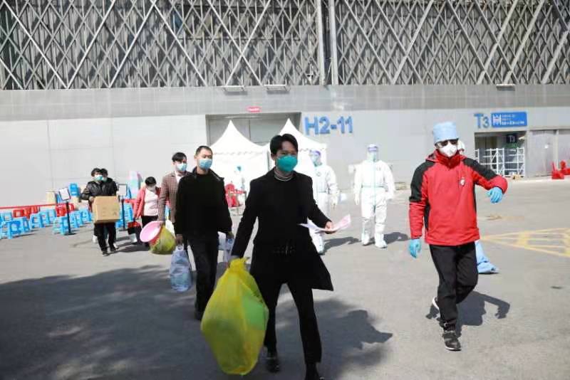 光榮退“疫”!今天,200多名患者分批次從上海世博展覽館方艙醫院出院
