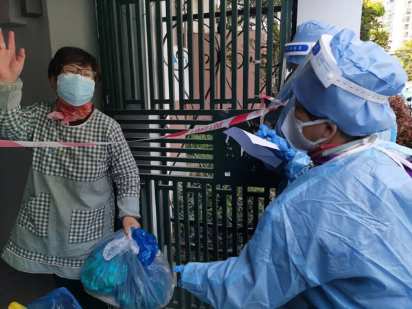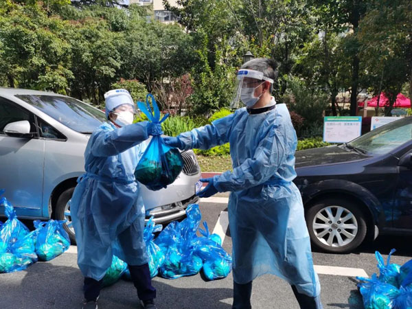 就這樣,一層樓一層樓地通知,一袋菜一袋菜地發放,不知不覺中張雅玉負責的3個樓棟馬上就要分發完了。