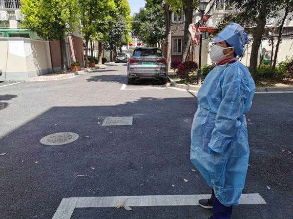 為居民發放完生活物資,已是中午12點。此時的張雅玉并沒有回家,而是站到了巡護小區的點位上。
