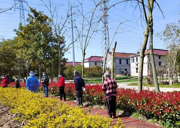 核酸檢測當天,團結村通過分時、分區、分批的網格化手段,為村民進行核酸檢測,該村將核酸檢測地點選在開闊空曠、環境清新的鄉村公園、市民運動場地等4個場所,平均每個采樣點為400多位村民提供檢測,F場的工作人員和志愿者嚴格按照區、鎮有關要求,對進入場地的村民進行測溫、登記、掃碼,嚴格要求村民保持至少2米的距離,并通過小喇叭,不間斷地播報現場注意事項和封控管理要求。同時,該村還專門安排一組檢測人員,為全村年老體弱、臥床不起的130多名老人提供上門檢測。