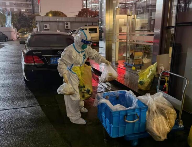 駐扎浦東站點的企業服務專班成員正在進行醫廢處理
