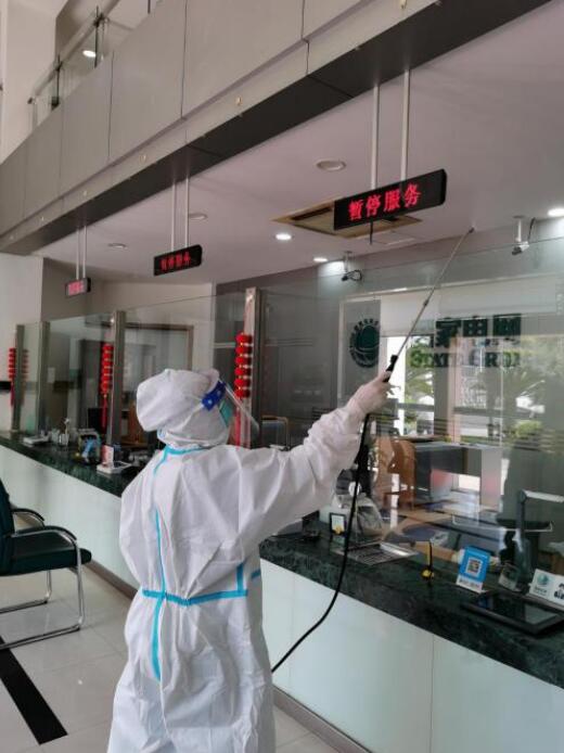 駐扎浦東站點的企業服務專班成員正在進行環境消殺